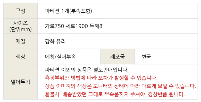 [부속포함]A6마트 투명 욕실파티션750X1830