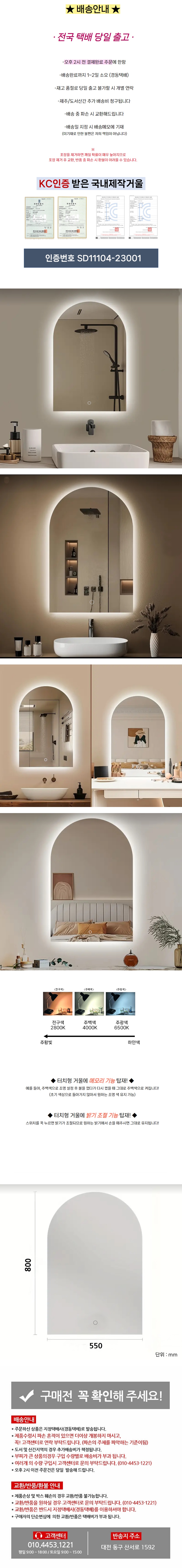 LED조명거울 윈도우(아치형) 터치형 3색변환 / 욕실조명거울
